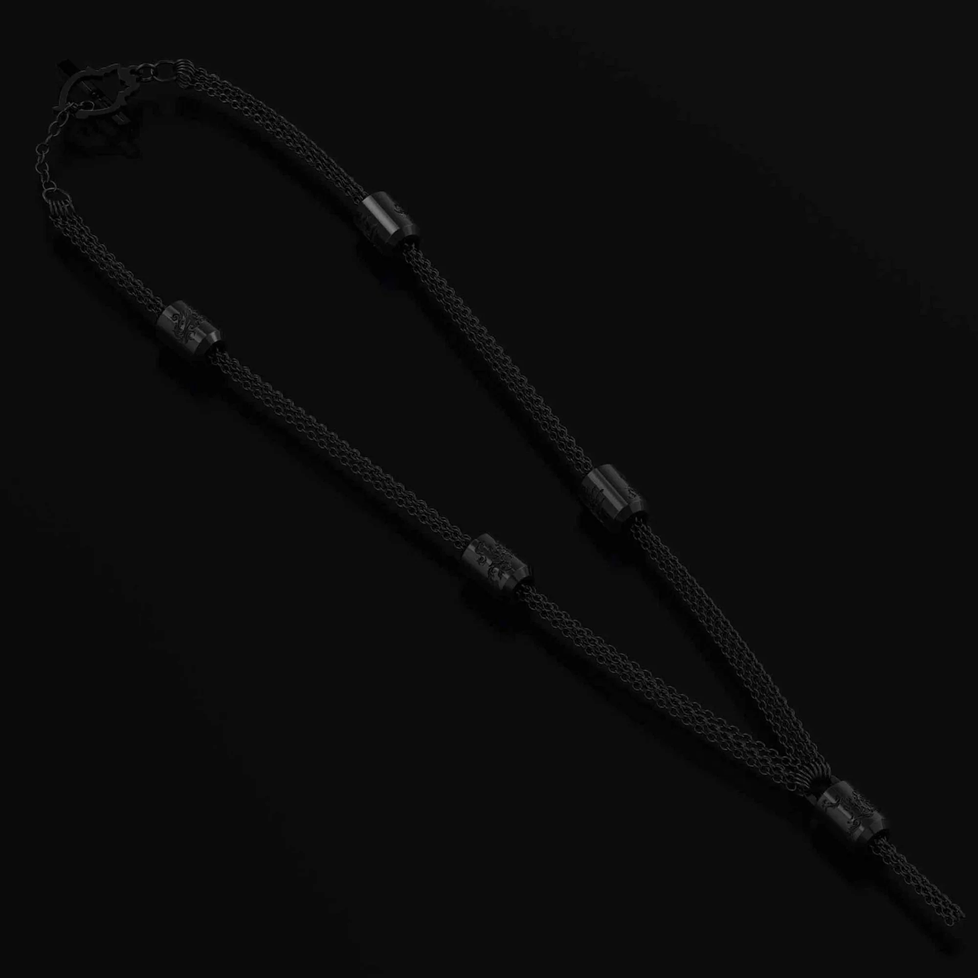 Multiple cable chained necklace finished with a polish featuring debossed transformation themed artwork with a rear T-Bar closure.